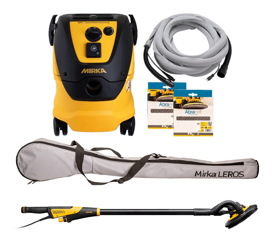 Brusilnik Mirka® LEROS združite z Mirkinimi brezprašnimi mrežnimi brusnimi sredstvi in ustreznim sistemom za odsesavanje prahu, da ustvarite in bolj čisto delovno okolje.